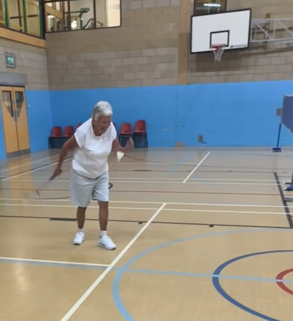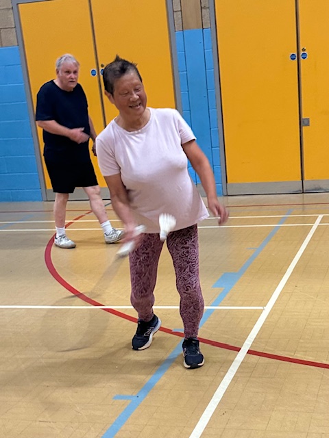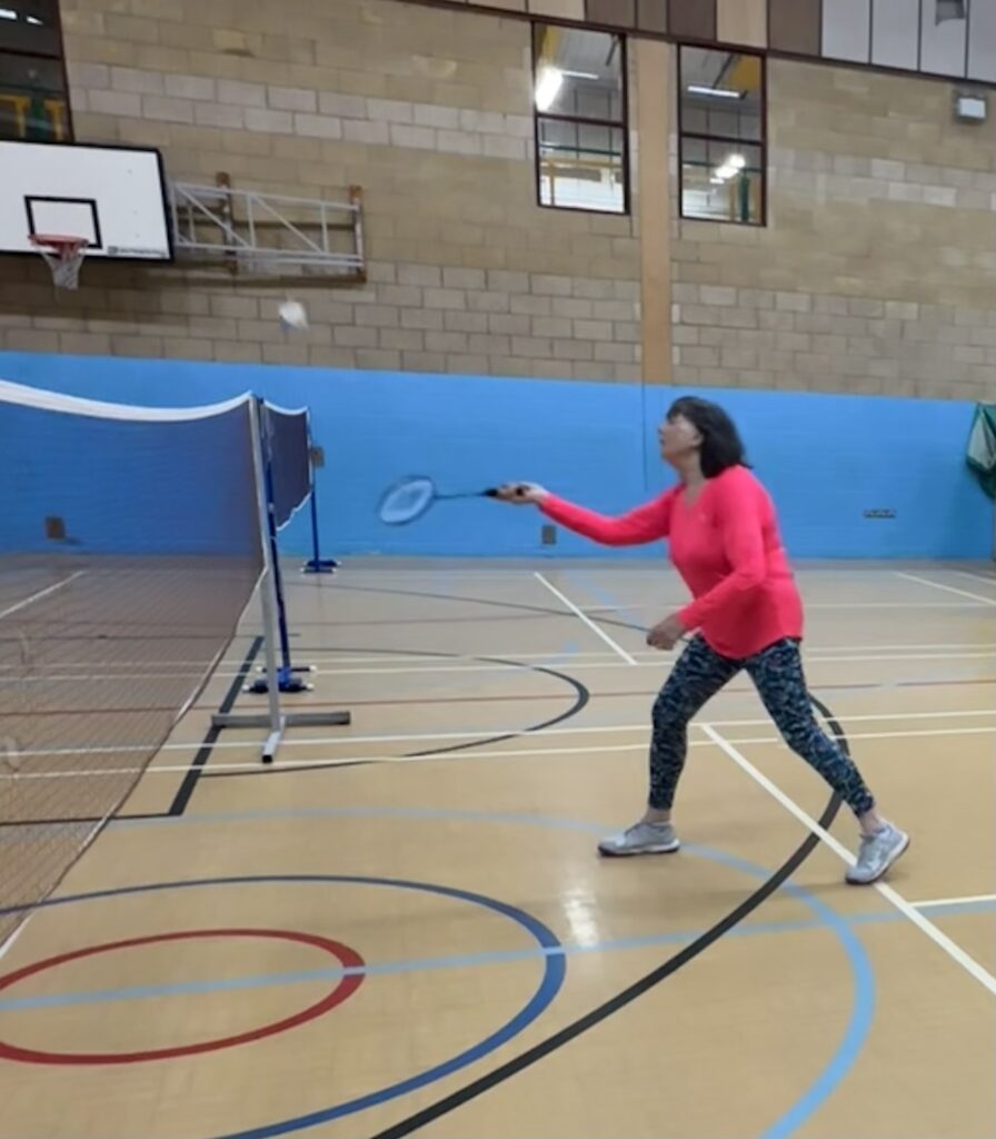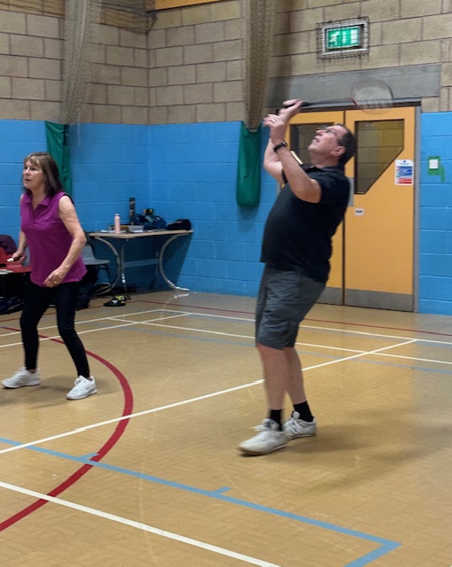 It’s a friendly group of around 12 with a fairly even gender balance. Most members may have played for fun at some point in the past so the group is not overly competitive and newcomers to the sport can be loaned a racket and given a little help to get started and to learn the rules. Almost all games are played as doubles, so it is not too strenuous, and members are free to take a break whenever the need arises. We always try mix up teams as much as possible to ensure that it’s a sociable occasion and to keep the games as even as possible.